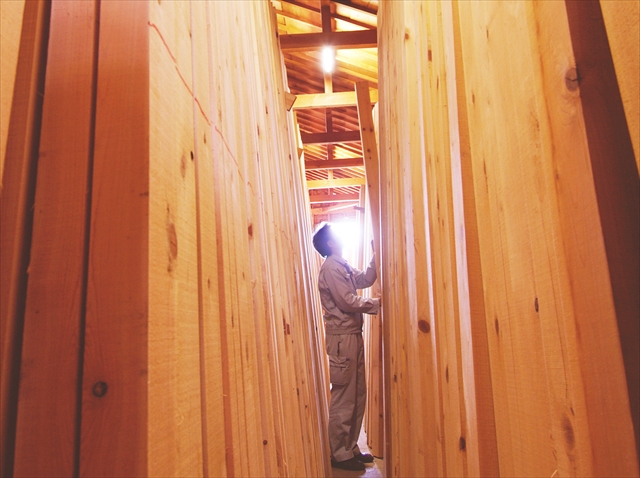 住宅用の木材を乾燥させる際、多くはボイラーを熱源とする人工乾燥に頼っていますが、私たちは昔ながらの天然乾燥を行っています。