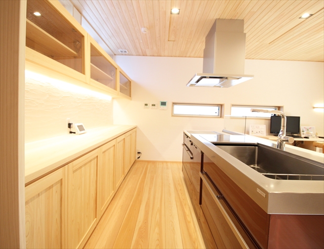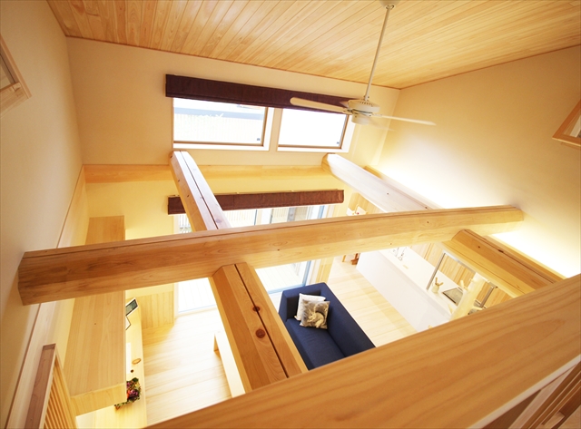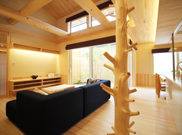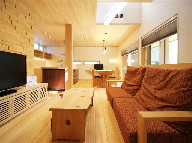 空気清浄効果の高い、天然乾燥のヒノキを使ったリビング