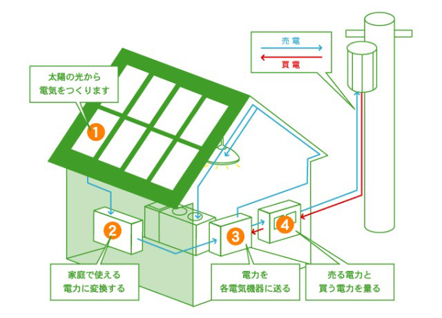 発電した電気を使って電気代を節約し、余りは売却して収入に