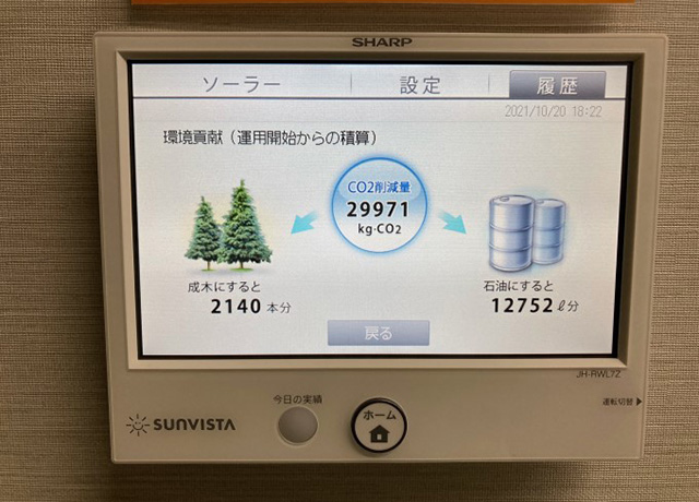 自宅の太陽光発電によるCO₂削減への貢献をモニタで把握