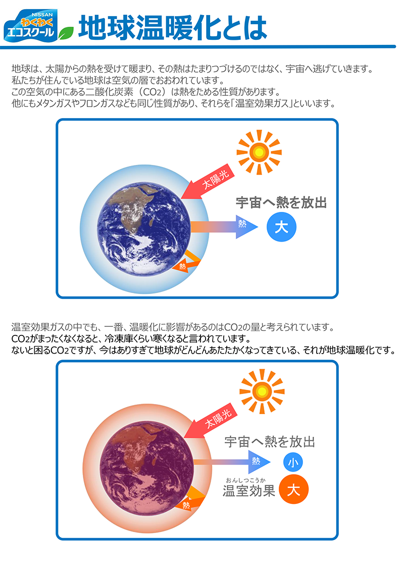 "地球温暖化が進むと気候変動等、私たちの生活にも大きく関わる変化が起こってしまいます。