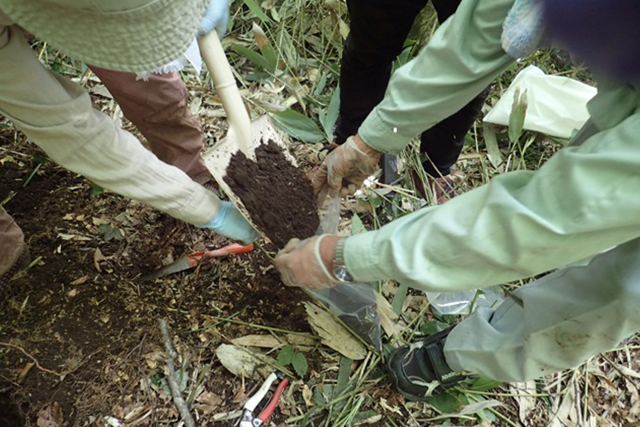 土壌採取県内の土壌汚染について調べるため土を採取して検査します。
